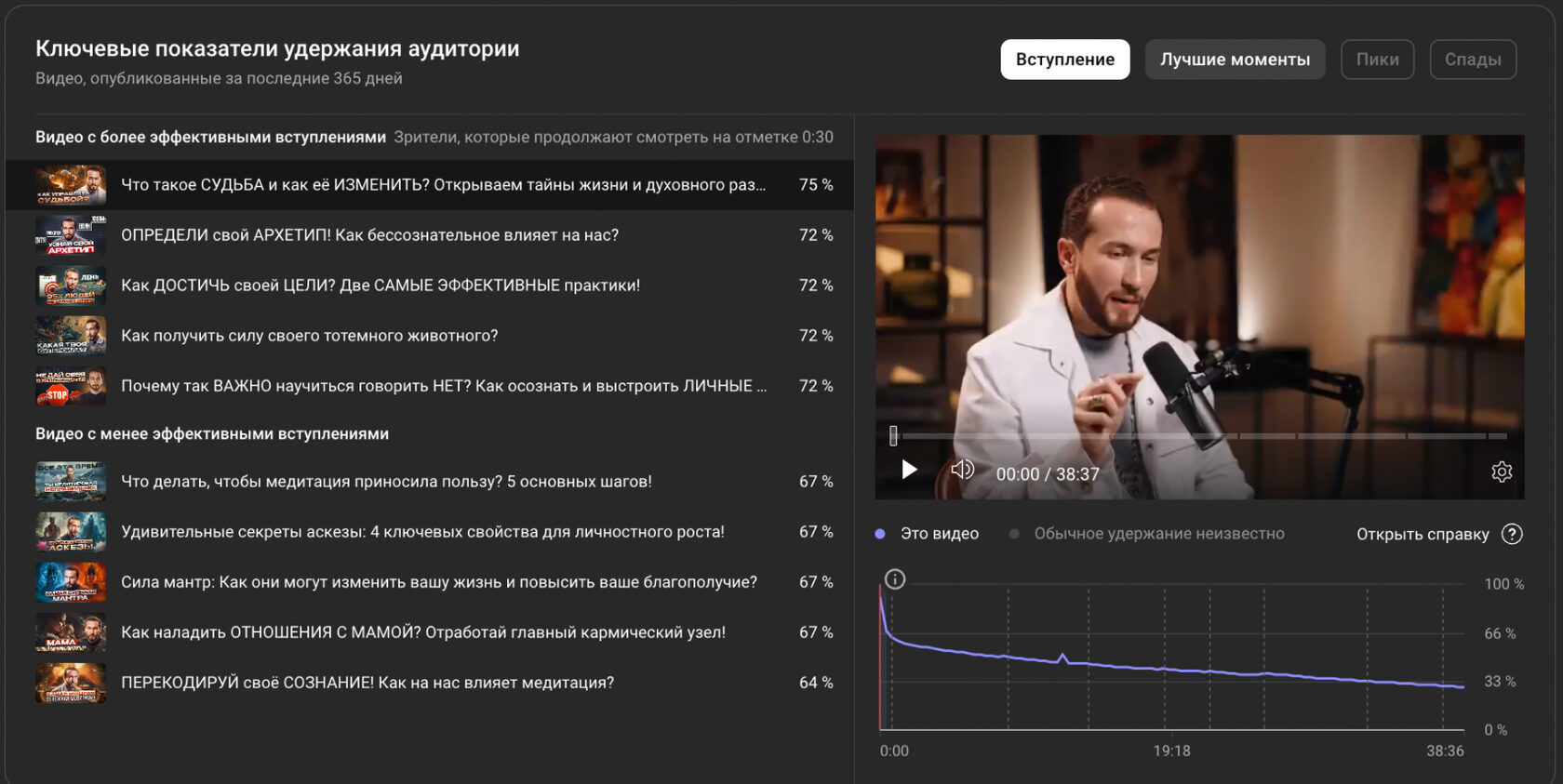 Показатели удержания выпусков на канале