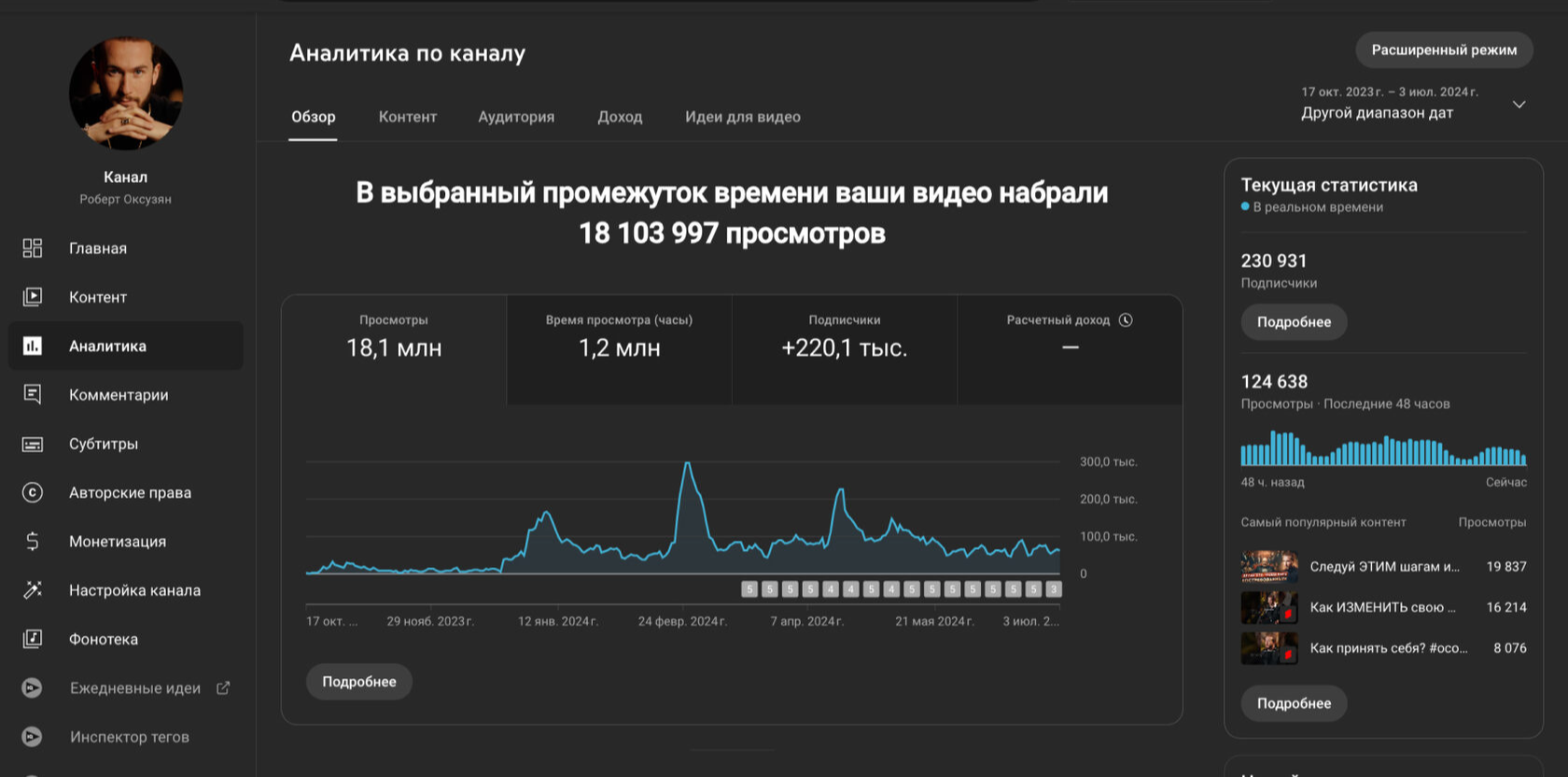 Общее количество просмотров за период